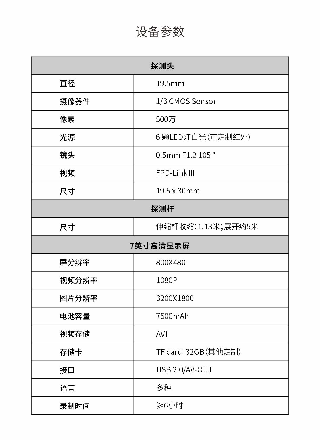 優勢特點:500萬像素;5米可伸縮調節桿;高空檢查專用