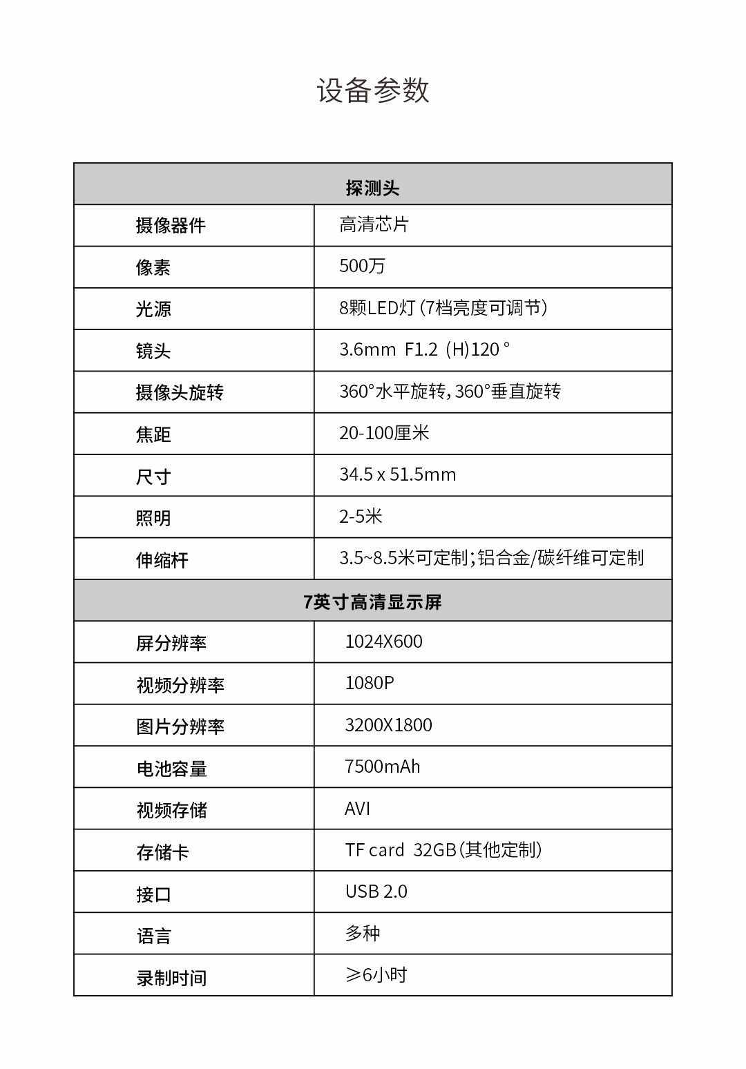 優勢特點:360°旋轉攝像頭;可監聽雙向對講;可伸縮調節桿;6小時超長續航