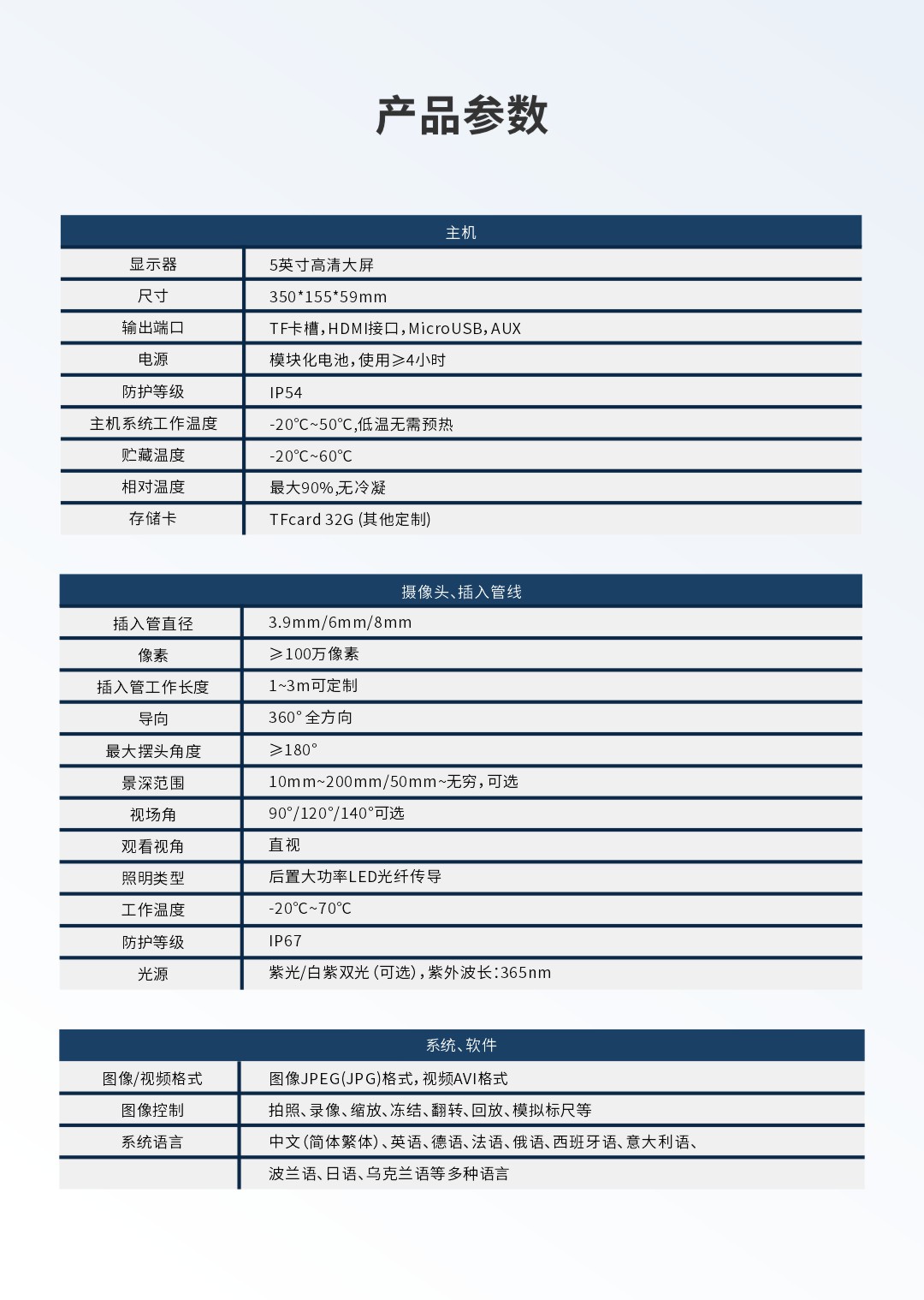 優勢特點:紫白雙光源;360°全方位擺頭;百萬高清攝像頭;工業探傷檢測專用